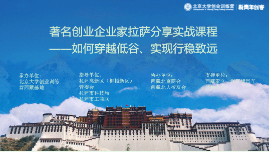 由拉萨高新区(柳梧新区)、拉萨市科技局、拉萨市工商联指导,北京大学创业训练营西藏基地主办、西藏北京商会协办的“著名创业企业家拉萨分享实战课程——如何穿越低谷、实现行稳致远”公益课程于六月底面向西藏企业家开讲!