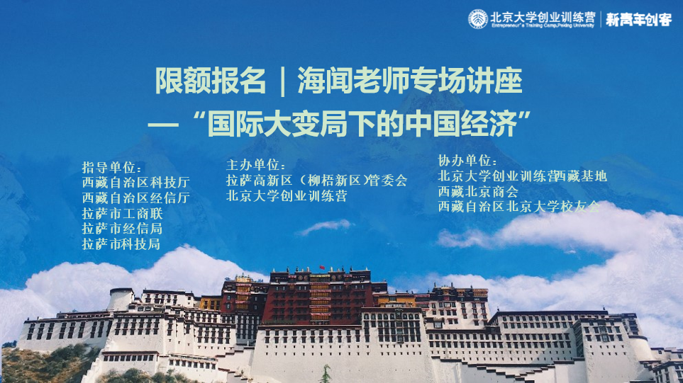 著名经济学家、北京大学校委委员会副主任、北京大学汇丰商学院院长、北京大学原副校长、经济学讲席教授海闻老师将于2021年8月7日在北京大学创业训练营西藏基地举办 “国际大变局下的中国经济”讲座活动。