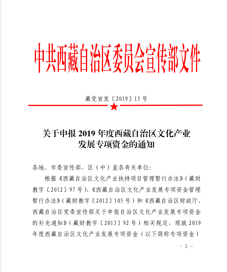 西藏自治区文化产业发展专项资金项目