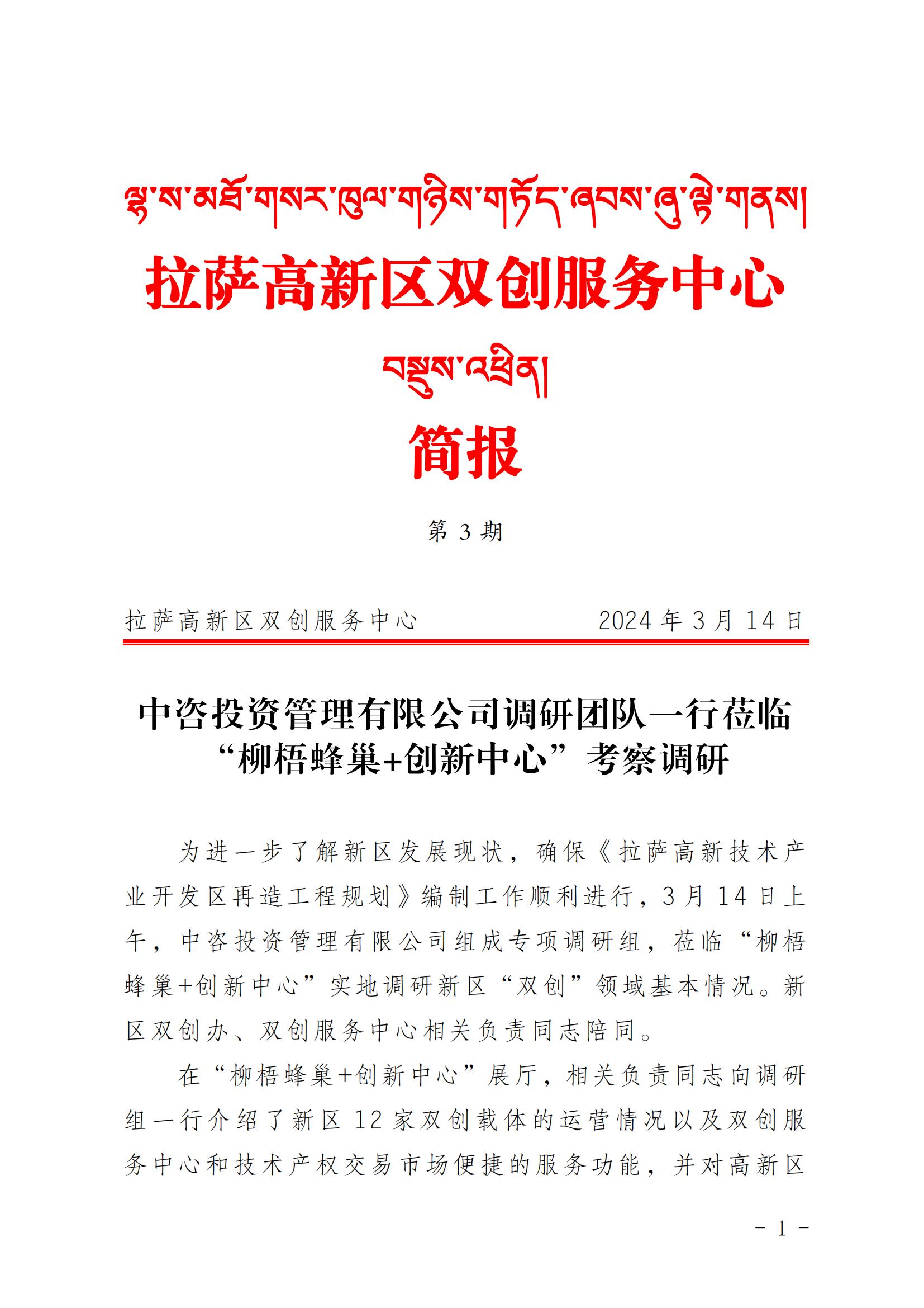 中咨投资管理有限公司调研团队一行莅临 “柳梧蜂巢+创新中心”考察调研