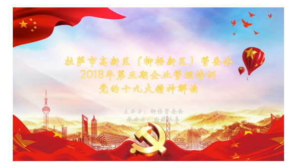 为此、西藏他喜管理咨询有限责任公司于5月22日承办了柳梧高新区(柳梧新区)2018年第五期企业管理培训,培训地点为N·次元众创空间12楼大会议室,本期培训以“党的十九大精神解读”为主题,为期半天。党建课程他喜邀请了自治区宣讲团的曲宗教授讲解有关十九大会议精神解读,现场有入驻企业的近20多名党员参加。曲宗教授以十九大全文精神为着手点,结合企业的党建工作,阐述企业应该如何结合党的相关政策做好企业内部发展。教授指出中国现已“站起来、富起来、强起来”,我们企业也更应该与时俱进在党的号召下迅速发展起来。