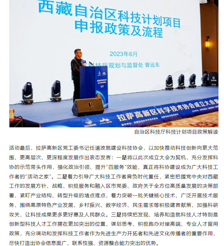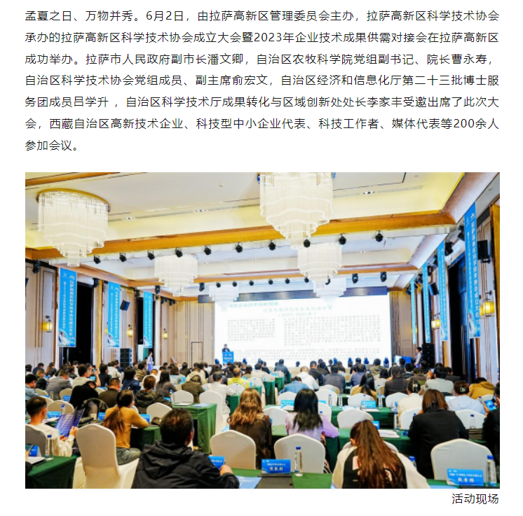 拉萨高新区科学技术协会成立大会暨2023年企业技术成果供需对接会成功举办