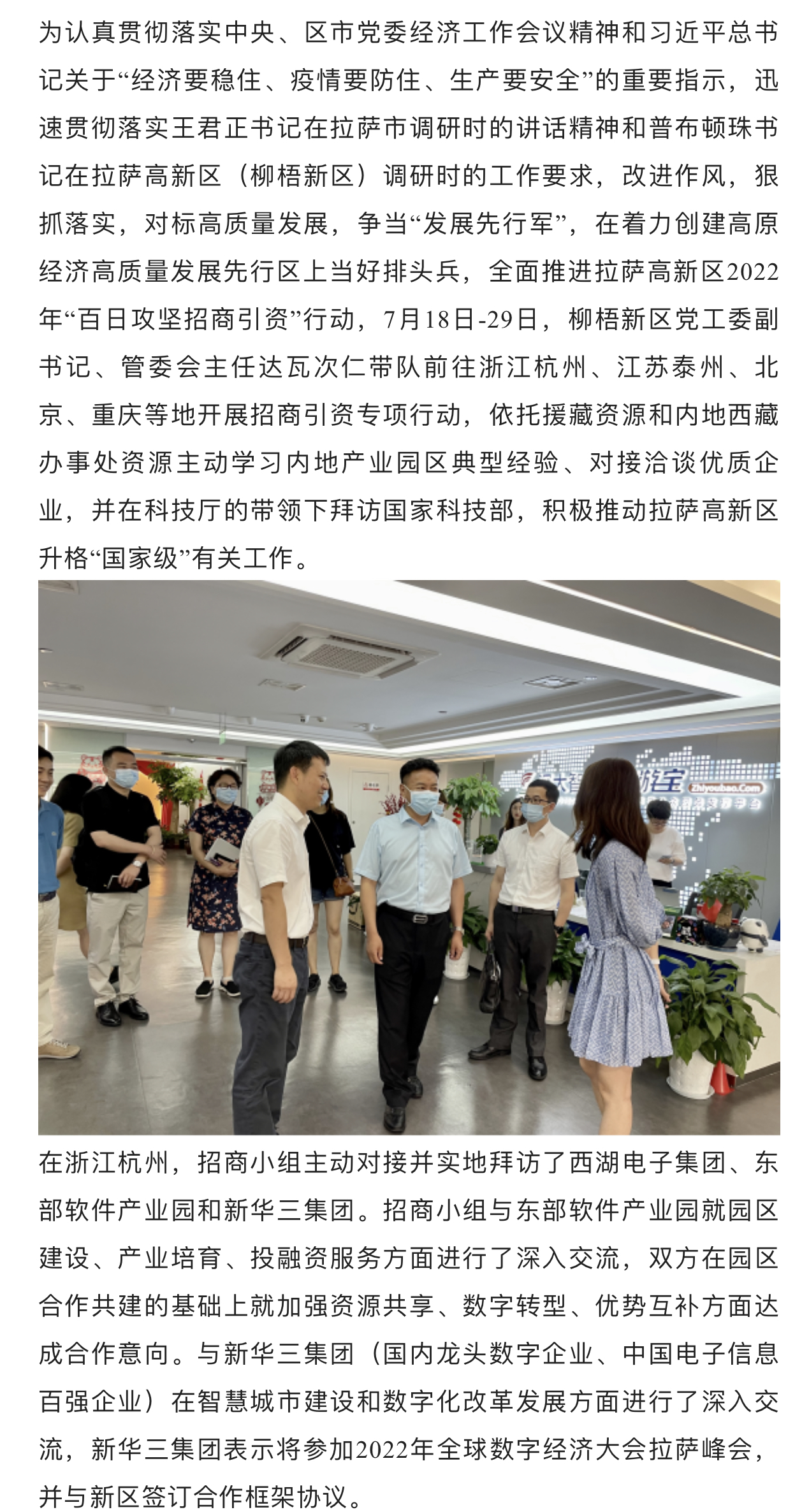 聚焦招商引资 争当高质量发展排头兵——拉萨高新区(柳梧新区)开展“走出去”招商引资专项行动