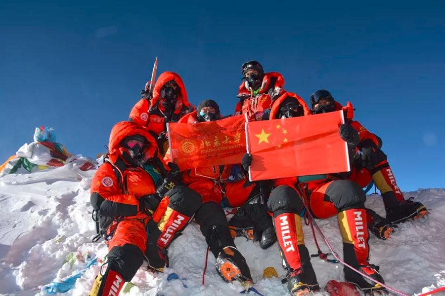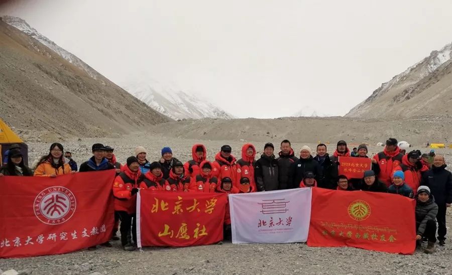 北京时间2018年5月15日10时23分,北京大学珠峰登山队不负众望,冲破重重阻力,克服种种困难,成功登顶世界第一高峰——珠穆朗玛峰,让北京大学的旗帜飘扬在了世界最高峰之上。登顶队员在顶峰展示了国旗、校旗和山鹰社的社旗,同时在珠峰顶峰宣誓了口号:“北大精神,永在巅峰”、“团结起来、振兴中华”、“百廿华诞,再创辉煌”、“2018北京大学珠峰登山队祝亲爱的母校120周岁生日快乐!”